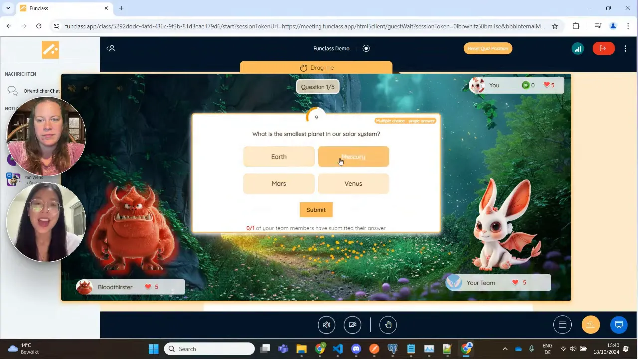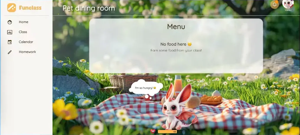 At the core of Funclass is the gamification concept, where students can raise and evolve a digital pet. This interactive feature allows students to earn food points by participating in lessons, which they can use to nurture their virtual companions. This not only motivates students to engage actively but also makes learning feel like a game.